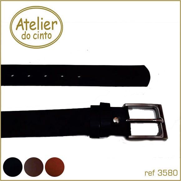 CINTO EM COURO NATURAL - 3,5CM LARGURA - FIVELA DE METAL NIQUEL ESCOVADO - MASCULINO